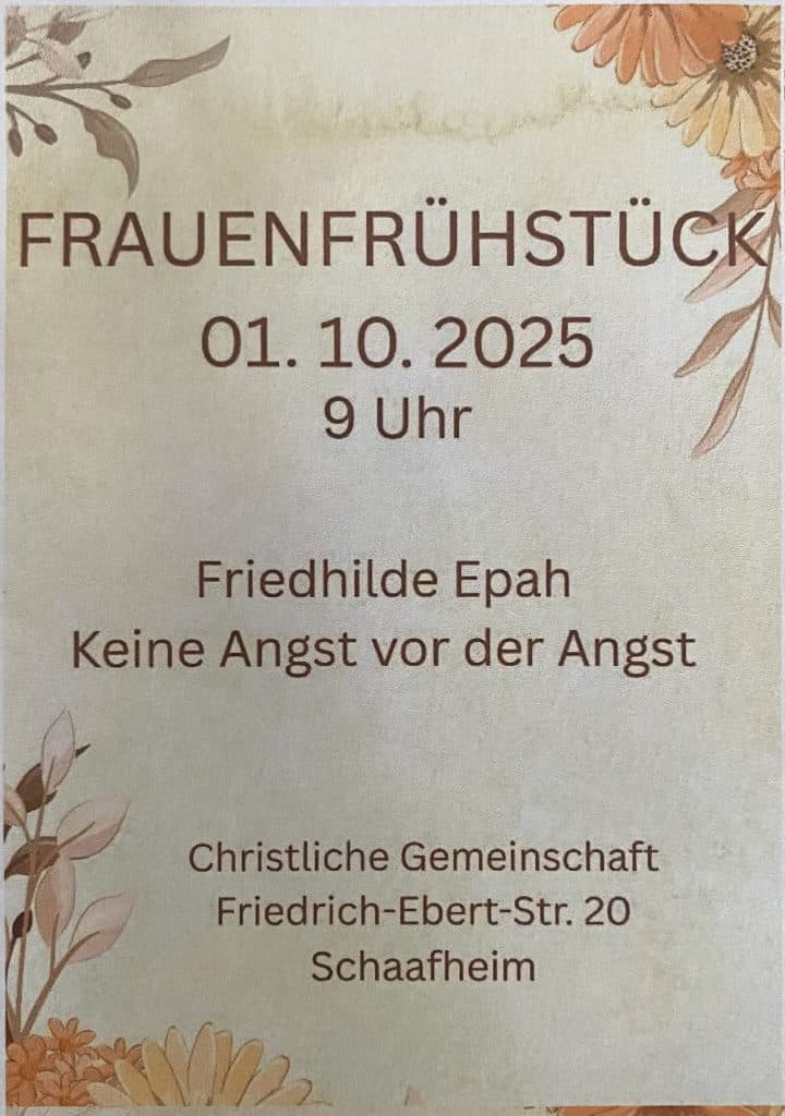 Wir sind spontan und flexibel im Ablauf des Abends. Wir reden über Gott, aktuelle Themen und lachen gerne. Sei herzlich willkommen. (Jeden Mittwoch 19:30 Uhr in Schaafheim; Kontakt: friedhilde@epah.de / Tel: 017672319376)